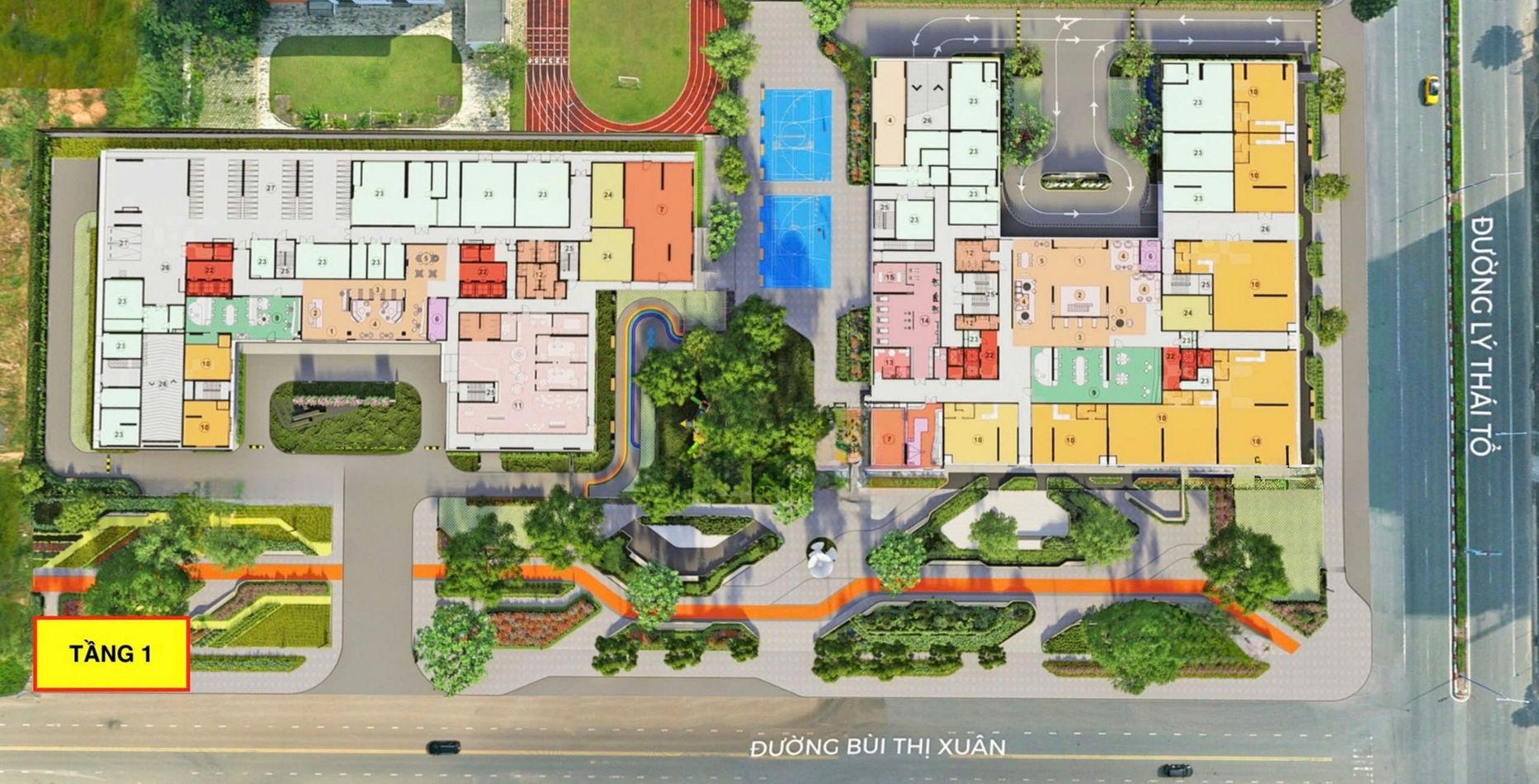 Chỉ 1 Phút – Bước chân ra thế giới tiện ích: Di chuyển nhanh chóng đến Công viên trung tâm Midori Park rợp bóng mát và hệ thống giáo dục chuẩn quốc tế (Trường Quốc tế Việt Hoa). Đây là điểm cộng tuyệt đối giúp các bậc phụ huynh tiết kiệm tối đa thời gian đưa đón con trẻ mỗi ngày.